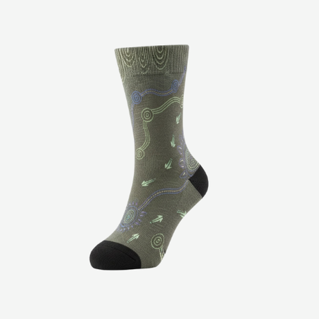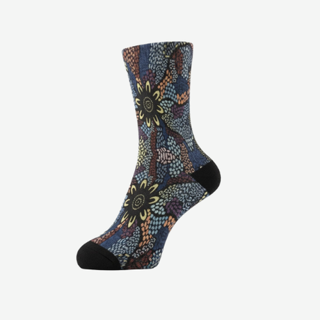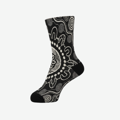 Our Indigenous design socks feature authentic Aboriginal artwork, blending culture with contemporary style. A perfect way to show pride or gift something meaningful.